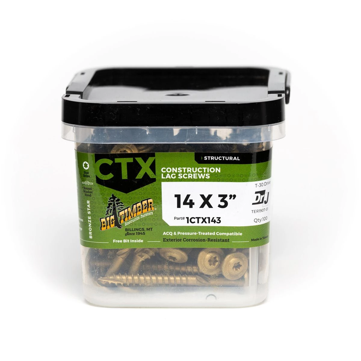 | Product Name | Big Timber Bronze T-25 Lag Screw, 100-Count Bucket, CTX143-100, #14 x 3 IN |