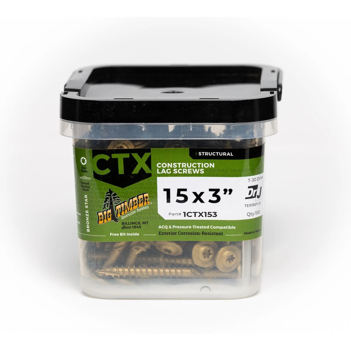 | Product Name | Big Timber Bronze T-30 Lag Screw, 25-Count Bucket, CTX153-25, #15 x 3 IN |