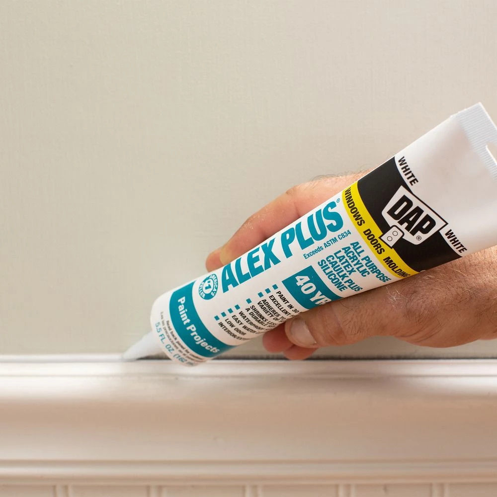 DAP Alex Plus Acrylic Latex Caulk Plus Silicone is an excellent quality, all purpose caulk for sealing a wide variety of interior and exterior surfaces. It contains silicone additives for greater flexibility and adhesion and less shrink for a durable, waterproof seal. Alex Plus is paintable in just 30 minutes with latex or oil-based paints, saving time. It won’t shine through or discolor the paint for superior paint finish results. It is easy to apply and tool, low in odor and cleans up easily with water. Cured caulk is mold and mildew resistant. Exceeds ASTM C834. Interior/exterior use.