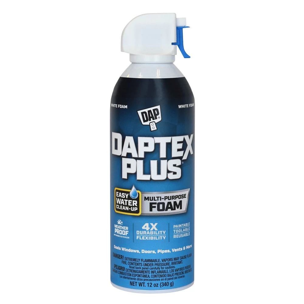 DAPtex Plus Insulating Foam Sealant is a latex-based formula that seals out drafts, reduces energy loss and prevents pest infiltration. It is a great choice for sealing around windows and doors during installation because DAPtex Plus will not over expand like many polyurethane foams. The reusable, non-clogging applicator and easy soap and water clean-up eliminates the waste and mess of other insulating foam sealants. DAPtex Plus can be tooled, molded and painted, making it ideal for patch and repair projects, such as holes or gaps in walls, trim and molding. The dried foam remains flexible, minimizing the need to trim excess application.