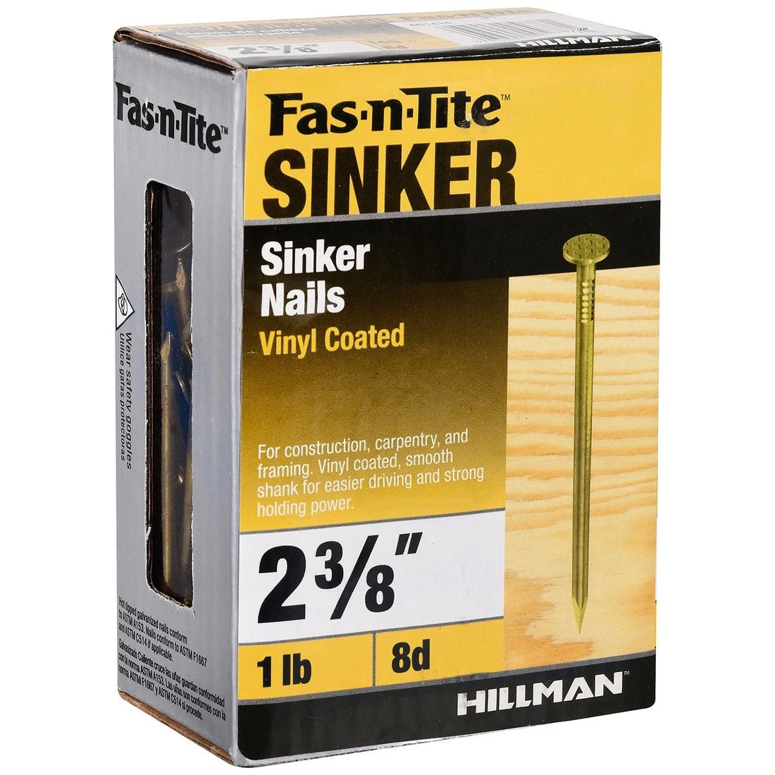 Sinker nails are used for framing and general construction applications. They are generally shorter and thinner than common nails. The vinyl coating on these nails provides lubrication when driving and increases holding power. Our Vinyl Coated Sinker Nails have a checkered flat head, typical amongst construction nails.