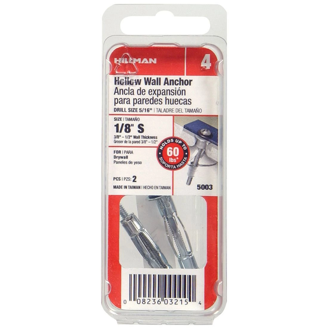 Hollow wall anchors, also known as molly bolts are used with drywall. Use to securely fasten mirrors, pictures, cabinets, and more to hollow walls. This anchor is an expandable sleeve that slides into pre-drilled hole in the wall. Once the anchor is installed, the screw can be removed and items can be changed without disrupting the anchor. Use for medium duty applications.