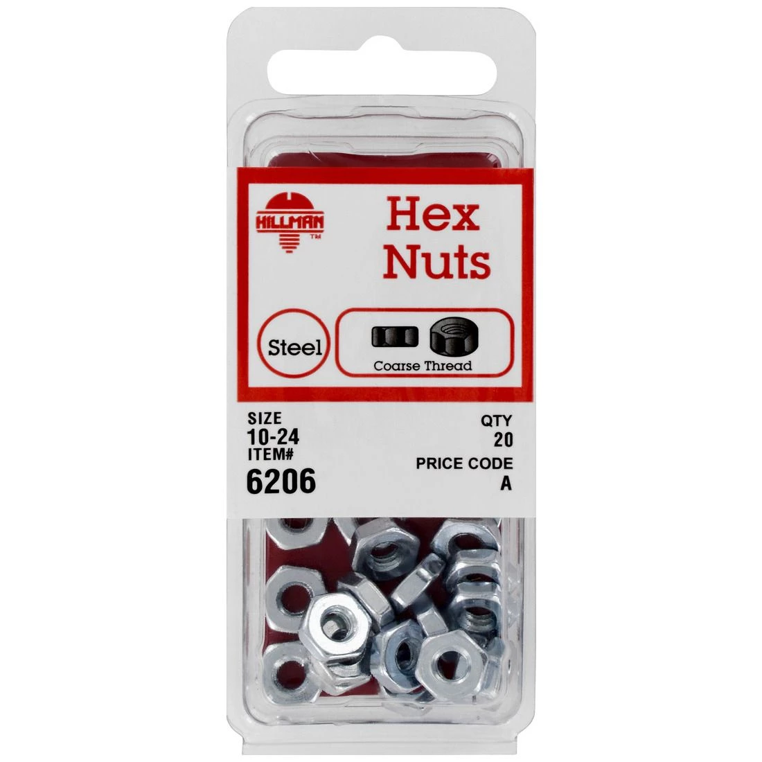 Hex machine screw nuts are used for fastening to a bolt when mechanically joining materials together. This type refers to nuts with smaller machine screw sizes under 1/4″.
