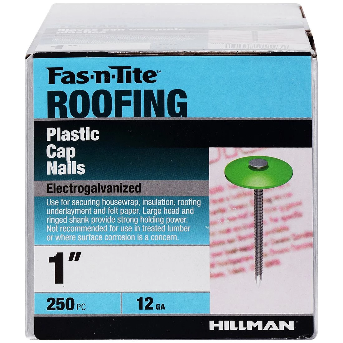 Manufactured for quick and easy installation, Electro-galvanized Plastic Cap Roofing Nails are ideal for fastening roofing felt, housewrap, sheathing, underlayment, and more. The ringed shank and wide round head on this nail provide superior holding power for reliable installation. Its capped-head helps seal out moisture that can penetrate sidewall, thereby reducing blow-offs and lateral slippage. The electro-galvanized finish on this nail provides superior rust and corrosion protection. Install with confidence as its sharp point easily pierces felt without ripping, and its flexible plastic head conforms to surfaces. Because of the wide head and tight hold, fewer nails are needed to get the job done. Use this fastener with a plastic cap roofing nailer.