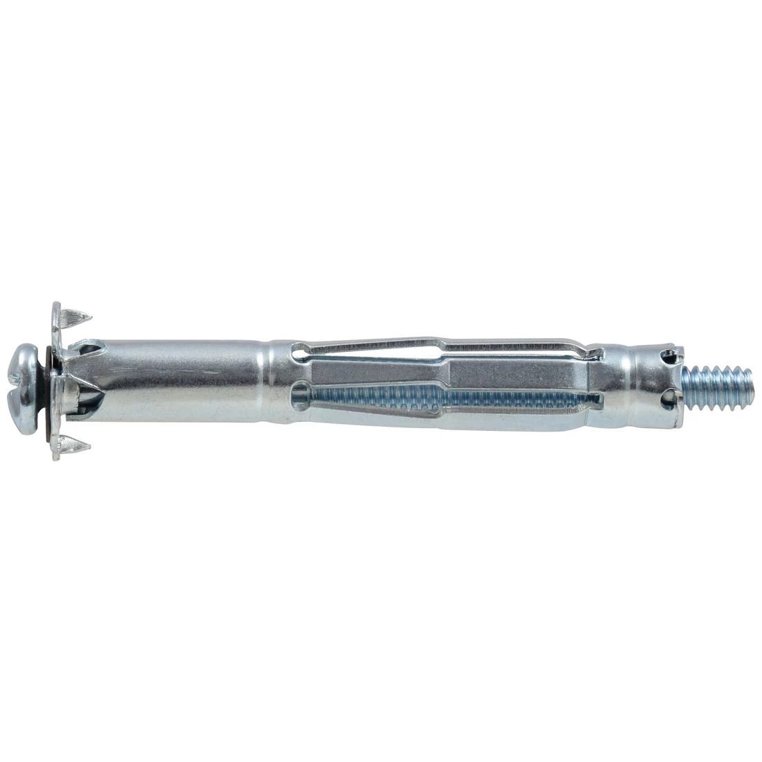 Hollow wall anchors, also known as molly bolts are used with drywall. Use to securely fasten mirrors, pictures, cabinets, and more to hollow walls. This anchor is an expandable sleeve that slides into pre-drilled hole in the wall. Once the anchor is installed, the screw can be removed and items can be changed without disrupting the anchor. Use for medium duty applications.