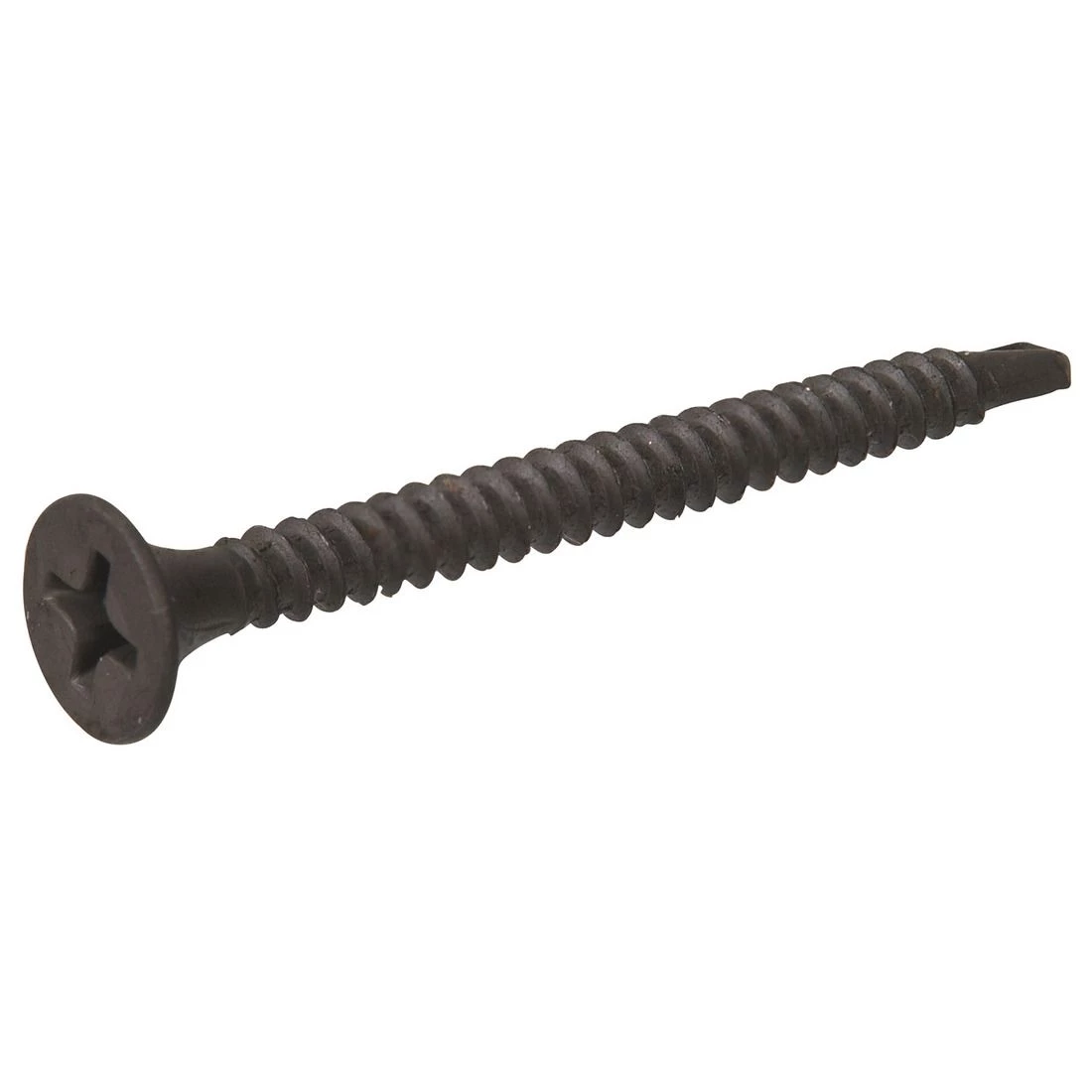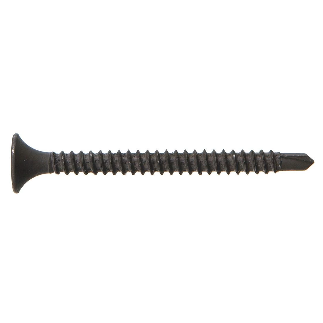 Drywall screws have been made specifically to combine drywall to either a wood or metal. A number 2 Phillips head makes the driving of this screw easily ready and the notched tip of the screw is great for piercing metal easily. A black phosphate finish on the screw makes them easy to see as well will easily combine with your paint and mudding.