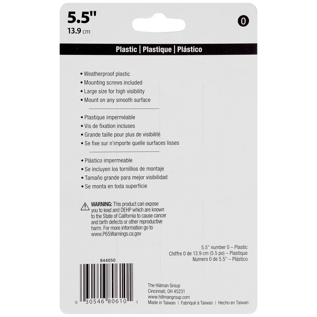 Hillman 5.5″ matte black house numbers offer bold visuals to ensure they are easily seen from the street. Mounting hardware and instructions are included with every number to make installation a breeze. Parts are engineered using high-strength nylon materials.
