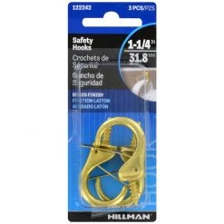 Hillman Safety Hooks are great for organizing or hanging items around the home. These hooks are uniquely designed with a spring safety shut that helps prevent items from slipping off the hook. Simple installation, these hooks screw-in place. Safety hooks are available in several sizes and finishes to fit your organizational needs.