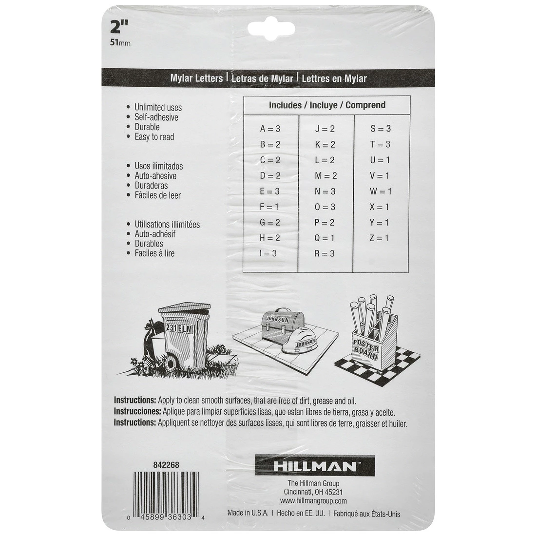 Hillman Square Cut Self Adhesive Letters, 842268, 2 IN
