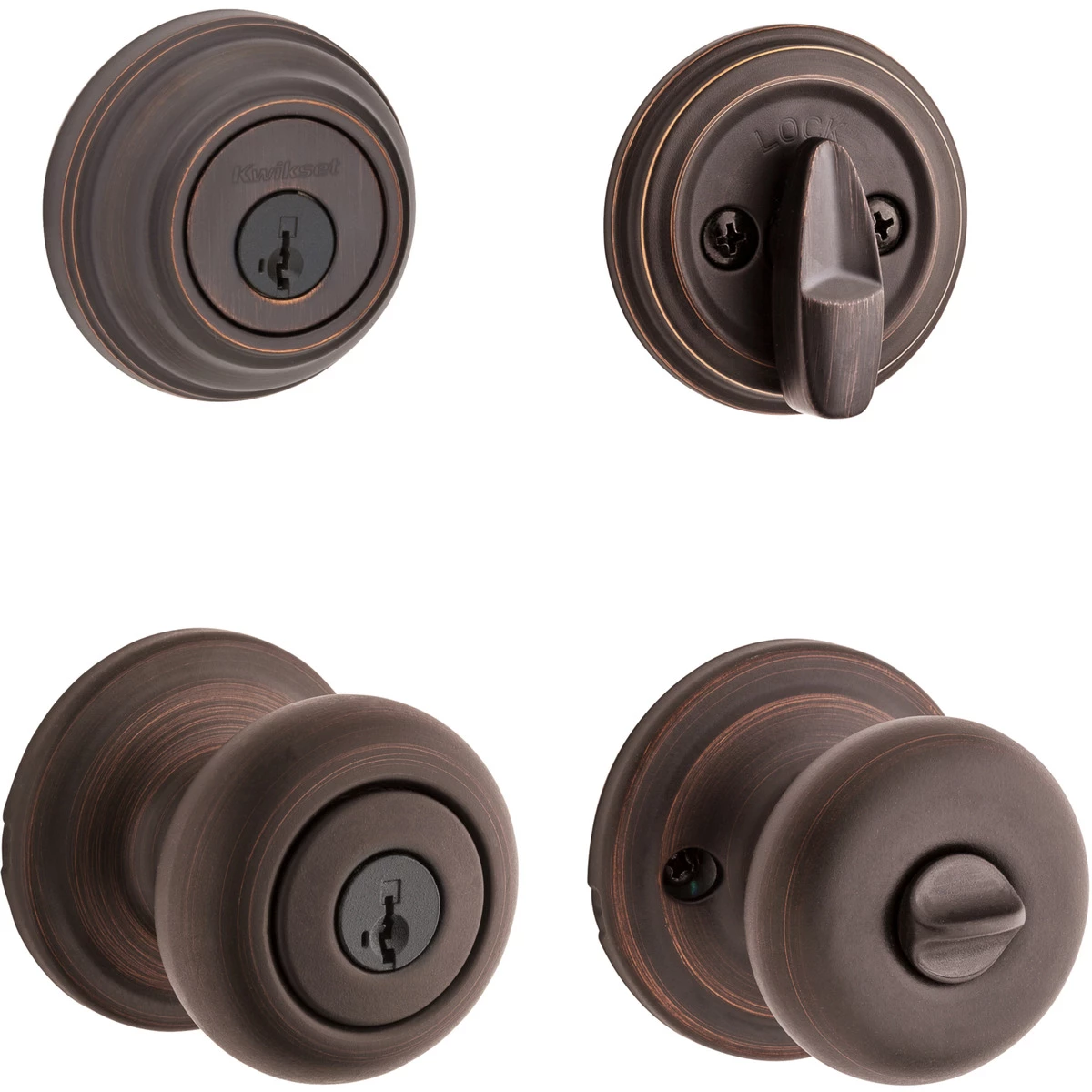 Step up to designer styles and superior security with Kwikset Signature Series products. Juno’s elegant, traditional style blends perfectly with most design styles. This combo pack provides two lockg pots — keyed entry and a keyed deadbolt. The Venetian Bronze fish is hand-rubbed to reveal unique bronze highlights and provides a rich and warm complement to the product’s style.