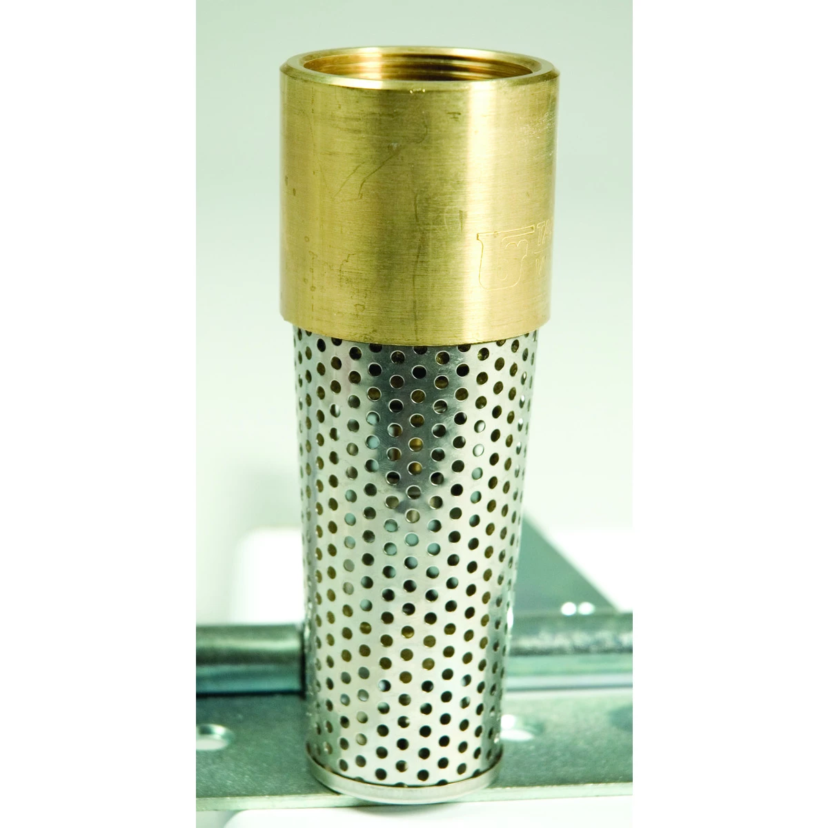 - 1-1/4″ brass foot valve maintains water in suction line, prevents backflow to water source.