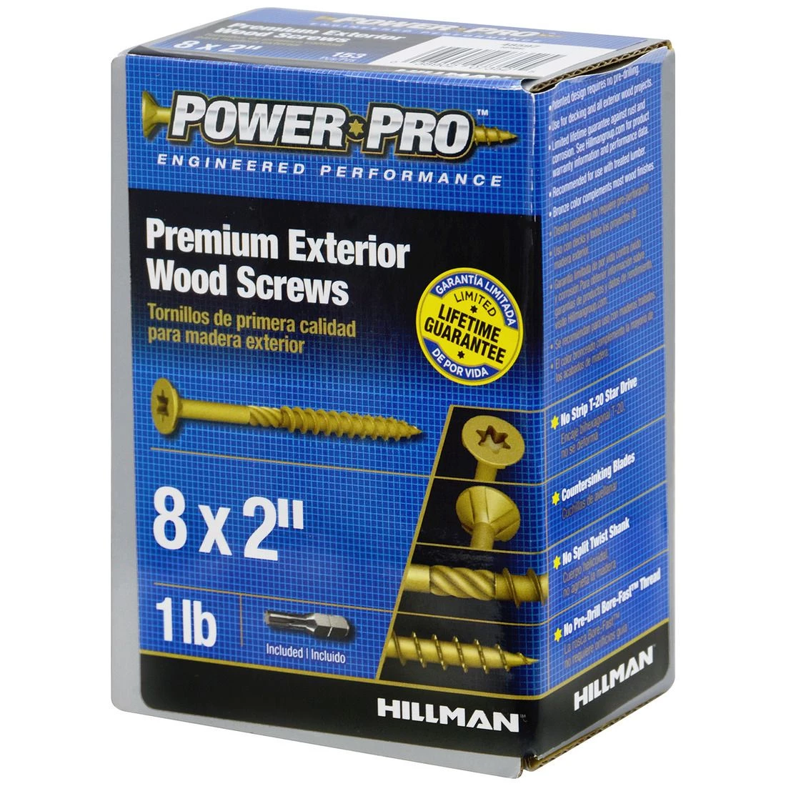 Power Pro Premium Exterior Wood Screws, Star Drive, 1 LB Box, 48597, #8 x 2 IN