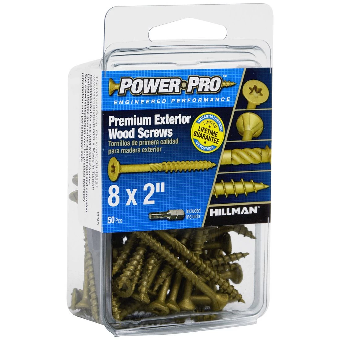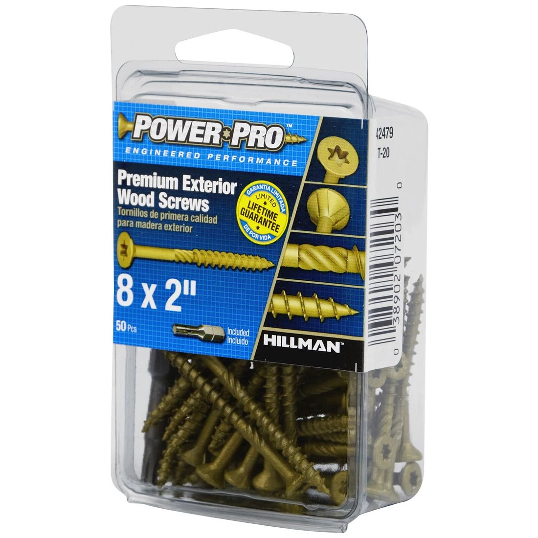 Power Pro premium exterior deck and wood screws feature a no-strip star drive, countersinking blades, no-split twist shank, and no pre-drill, Bore-Fast thread. Power Pro premium exterior deck and wood screws include a limited lifetime guarantee against rust and corrosion. The fastener coating is guaranteed against corrosion in cedar, redwood, and treated lumber for the life of the project. Common project applications include remodeling, fencing, storage assembly, cabinet assembly, and framing.