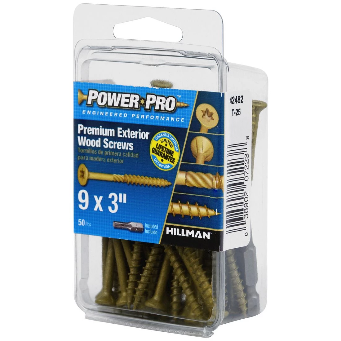Power Pro Premium Exterior Wood Screws, Star Drive, 50-Pack, 42482, #9 x 3 IN