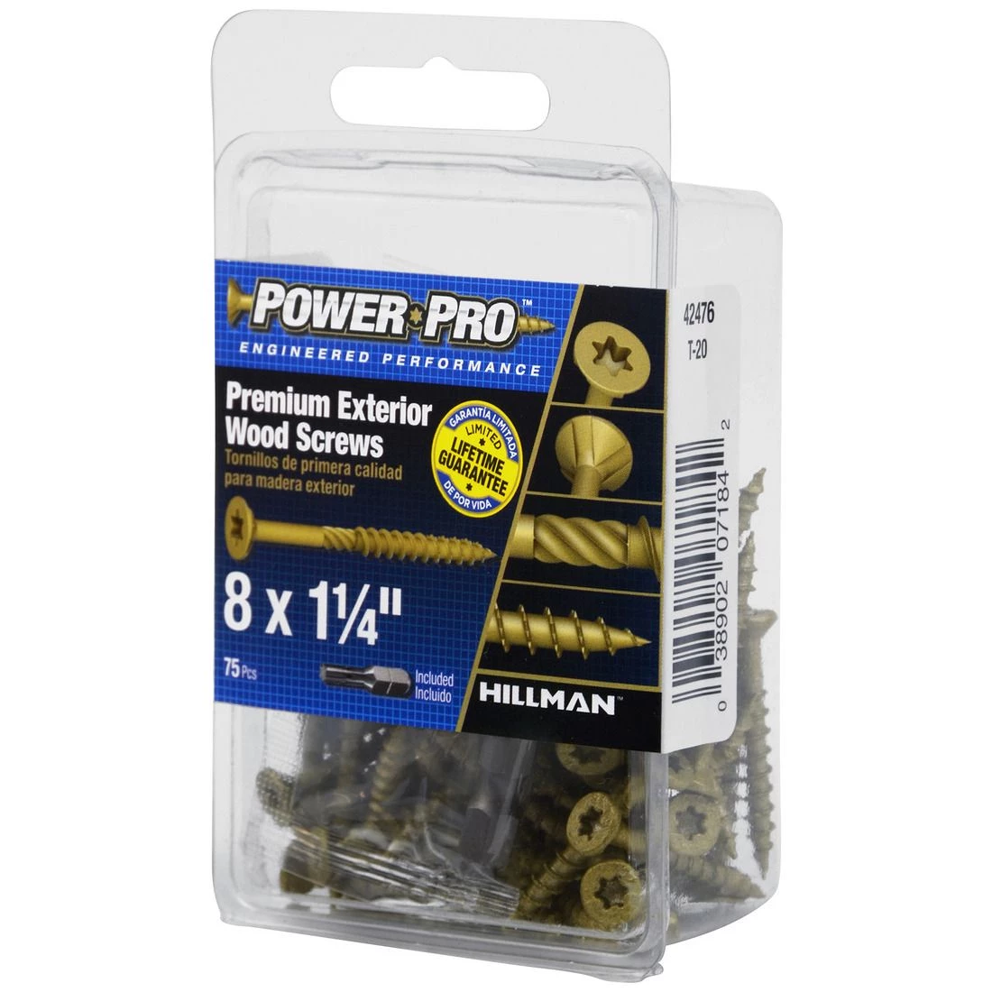 Power Pro Premium Exterior Wood Screws, Star Drive, 75-Pack, 42476, #8 x 1-1/4 IN