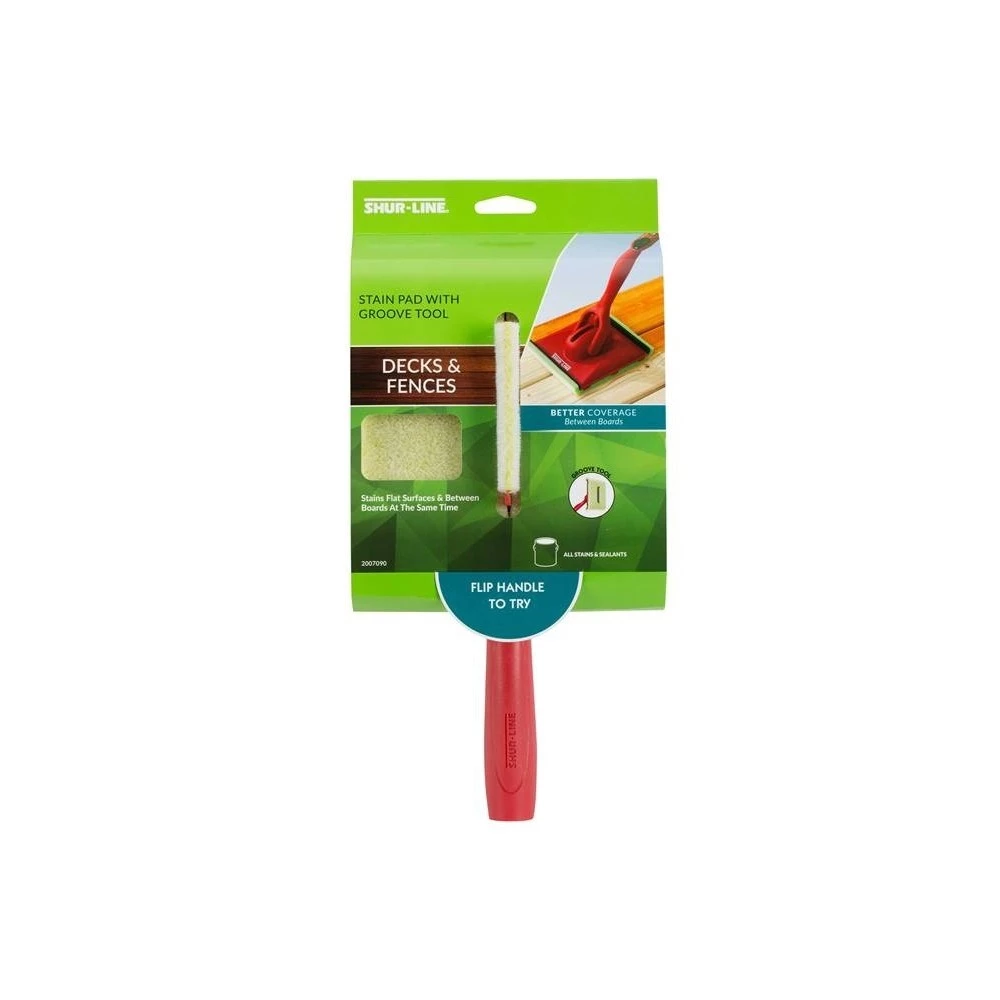 - -Unique Groove Tool deploys beneath the pad and between decking to stain the inner edges of your deck-Extra thick foam pad contours to rough surfaces-Rounded edges help it to glide over rough surfaces reducing the chance for ripping or gouging the pad-Groove Tool is retractable so it can be used like a standard deck pad-Handle is threaded to fit most extension poles-Engineered for your deck and exterior planking-Designed for use with all paints and stains