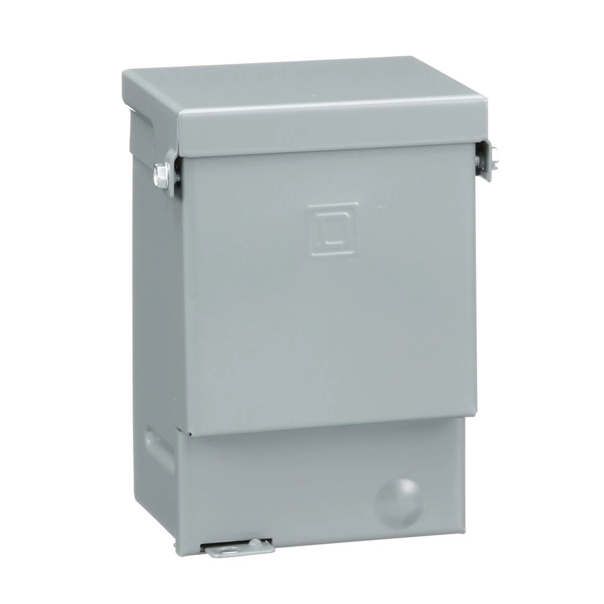 Square D QO and QOB Miniature Circuit Breakers, QO200TR weatherproof enclosure molded case switch with grey color finish suitable for air conditioner installation. UL listed, has NEMA 3R dergree of protection.
