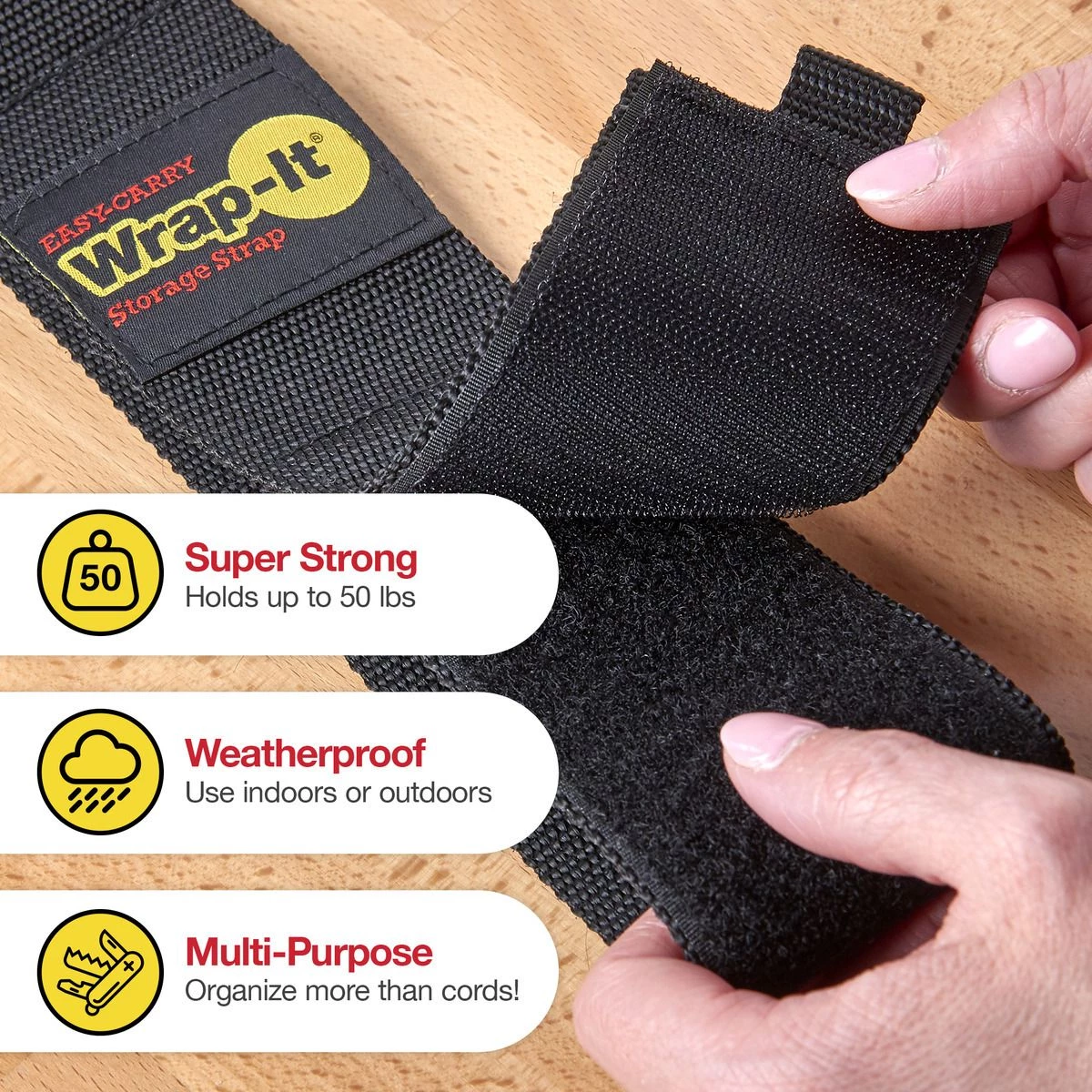 - GREAT SOLUTION FOR STORAGE AND ORGANIZATION – Use Easy-Carry Wrap-It Storage Straps for extension cord storage and organization in the house, yard, storage shed, workshop, car, boat or RV. Inside the garage, or outside in the shed, use as a carrier, keeper, and hanger for power tool accessories, your vacuum hose, or other campsite gear.